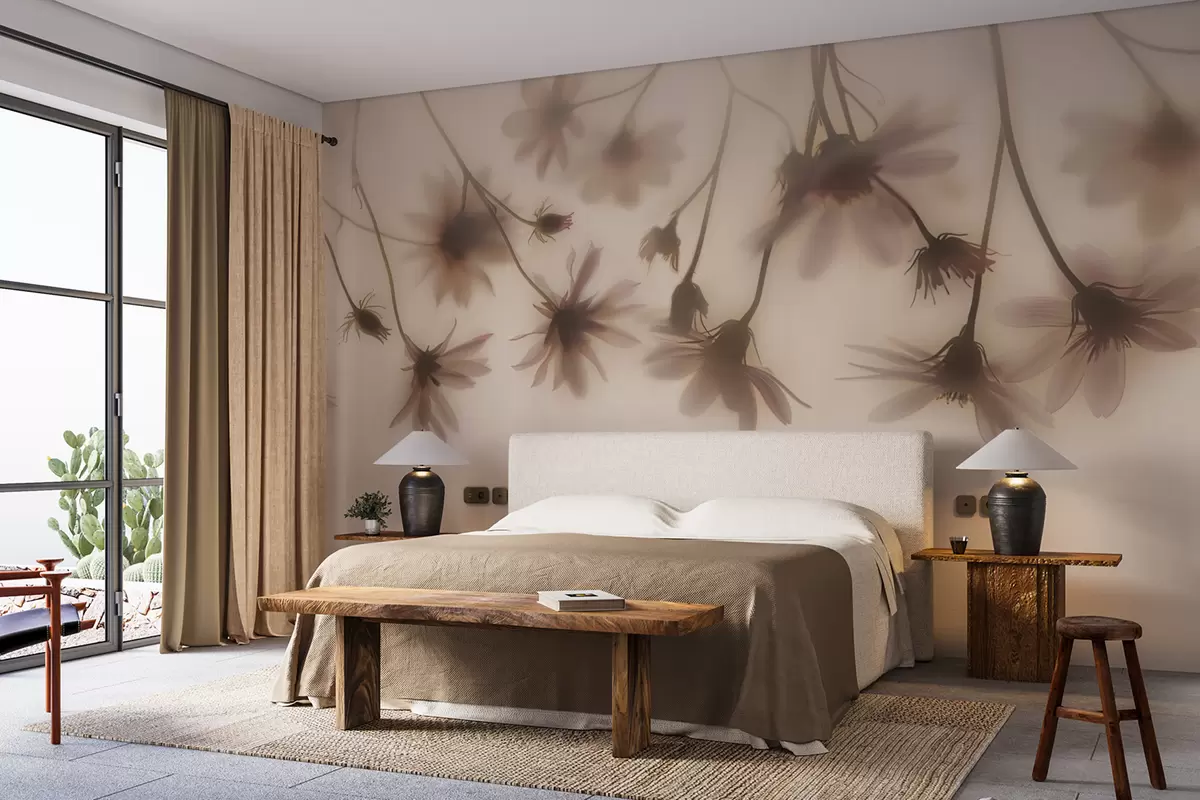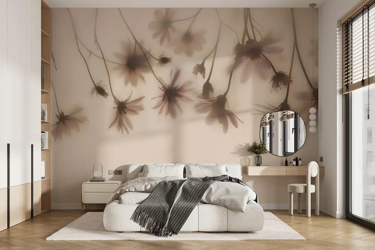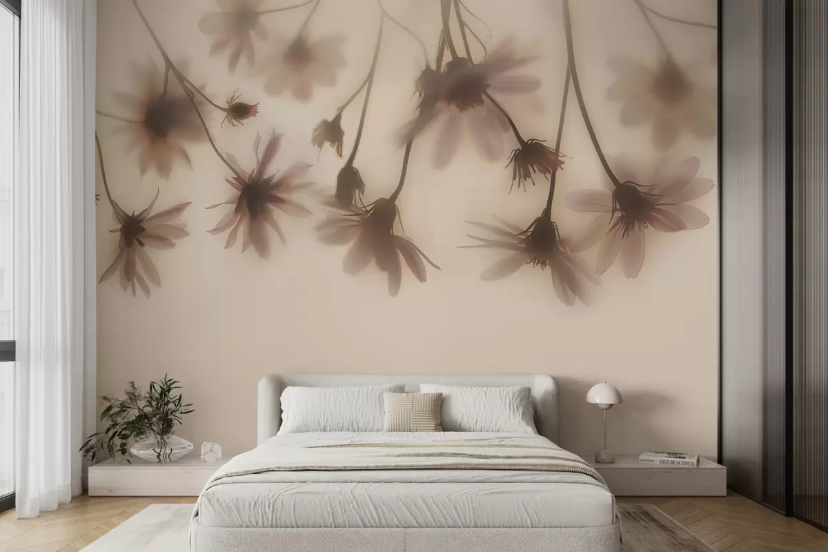 Тапете за зид Нежно цвеће у магли виси одозго у ружичастим бојама бр. w01469