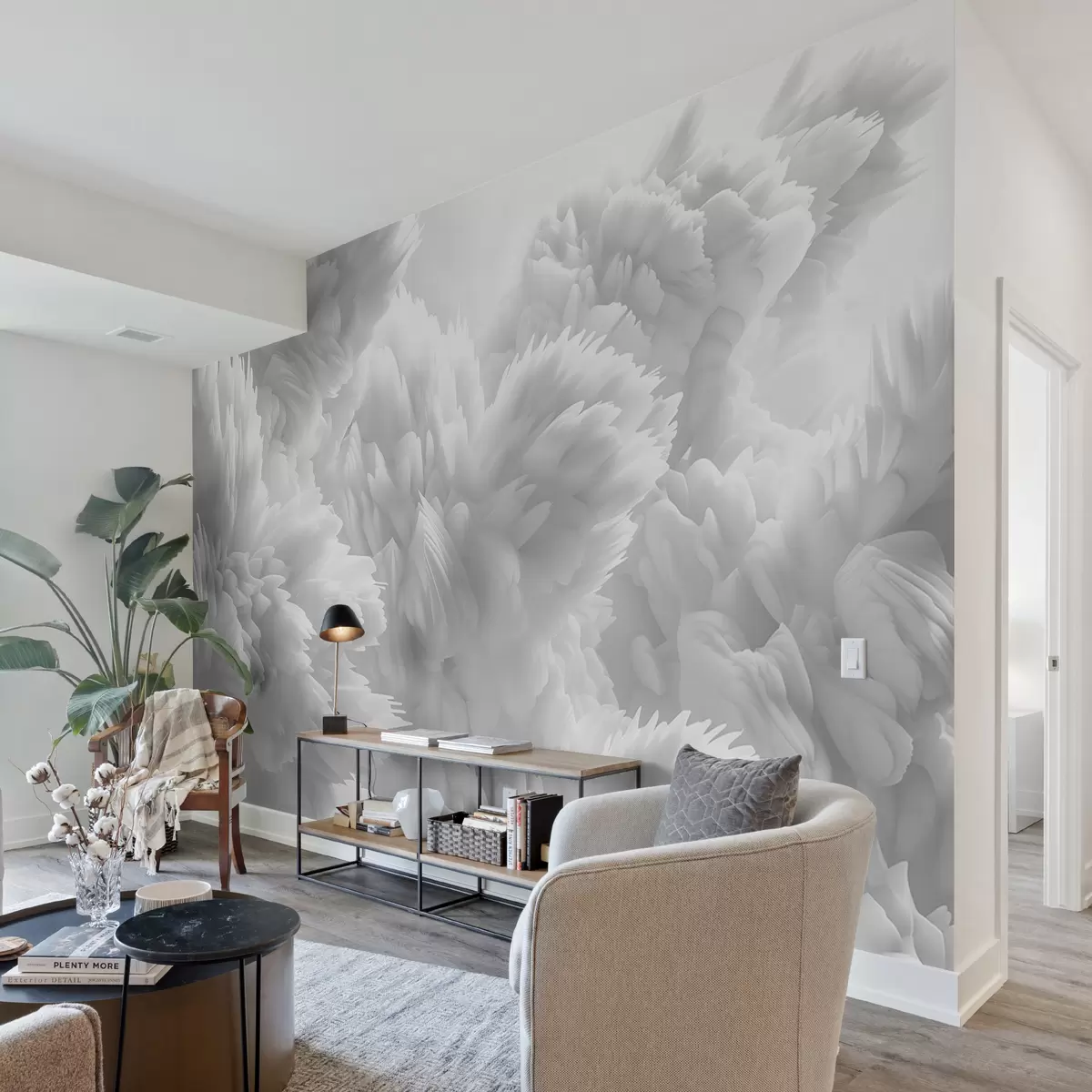 Тапете за зид Апстрактна композиција снежних кристала у вишеслојној шари перја у етеричној атмосфери бр. w01474