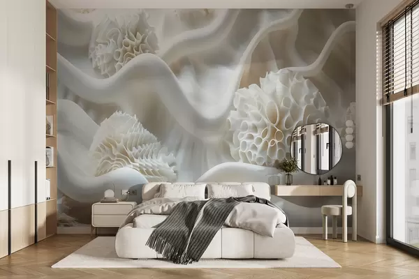 Тапете за зид Апстрактна таласаста позадина белих облика у 3Д стилу бр. w01475