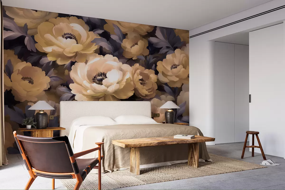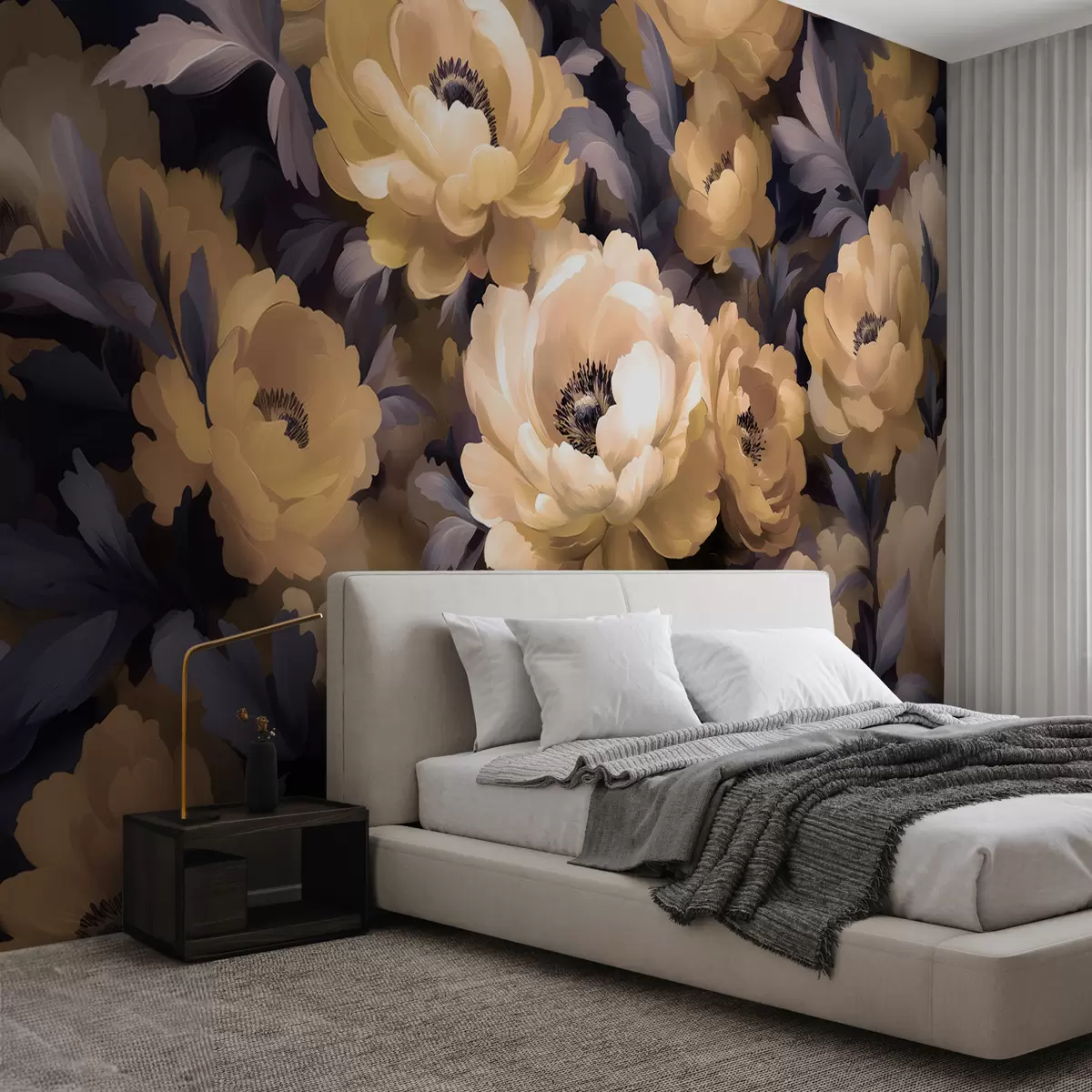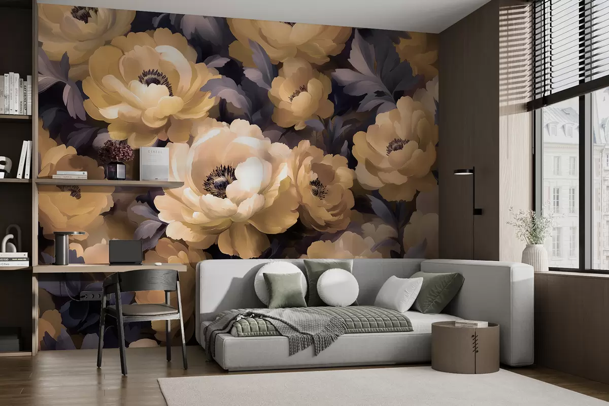Тапете за зид Стил цветног уља на бази беж и љубичасте боје бр. w01581