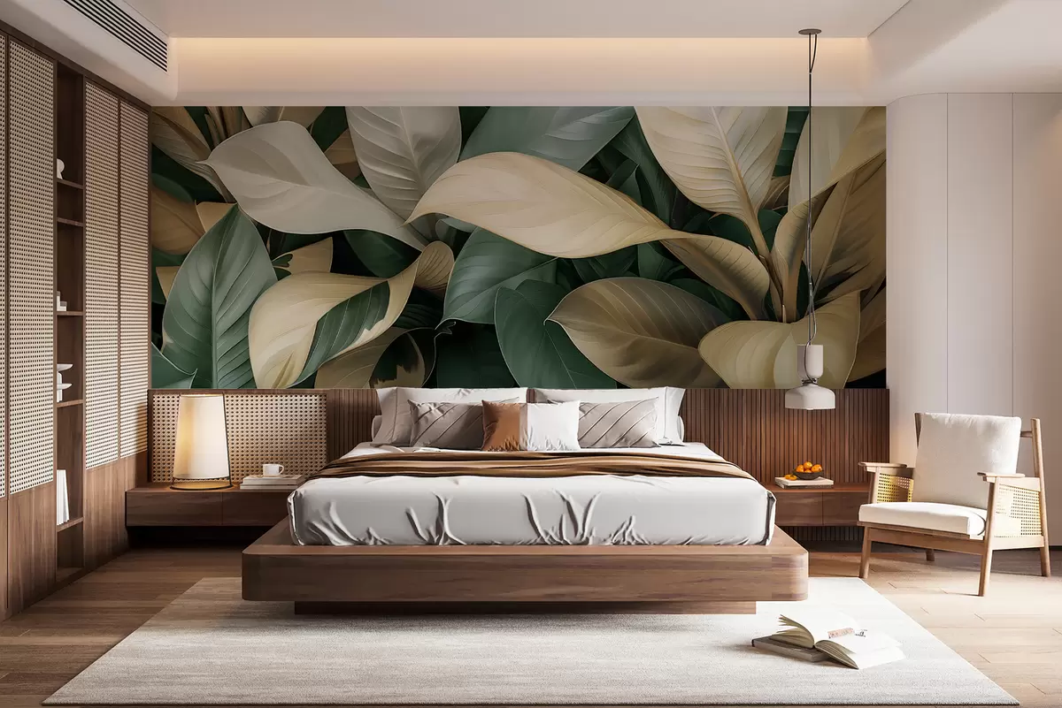Тапете за зид Велики тропски листови зелене и беж боје бр. w01587v1