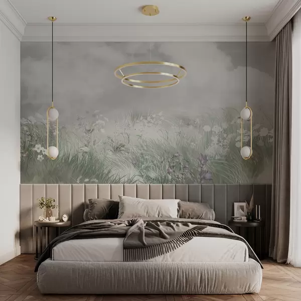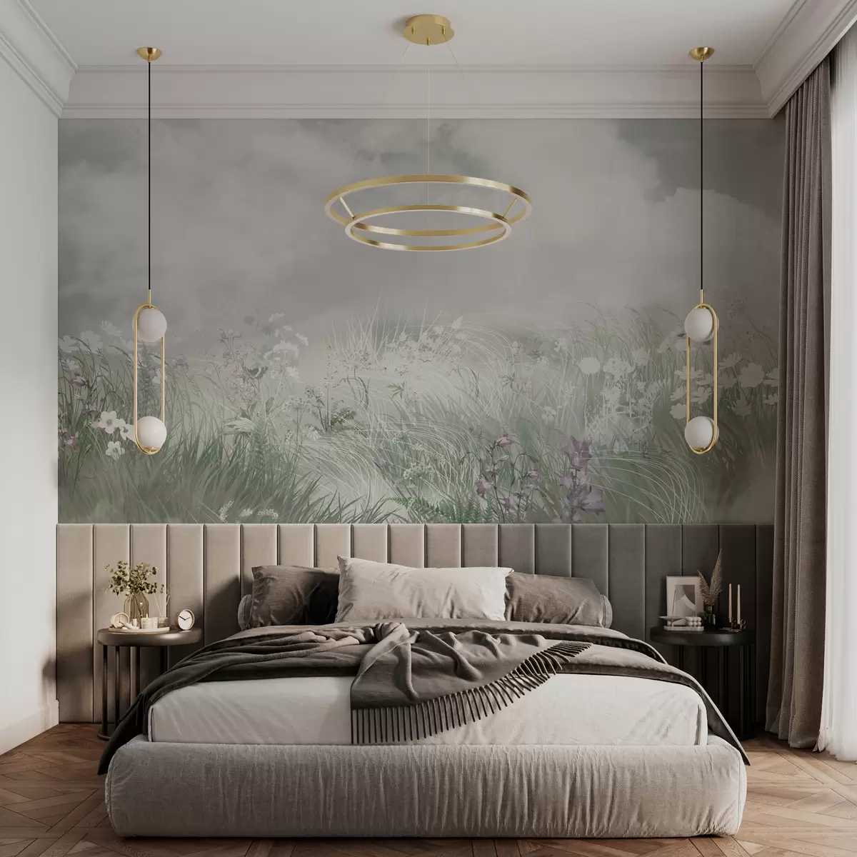 Тапете за зид Дивље цвеће и траве са сивим небом и облацима бр. w01624v3