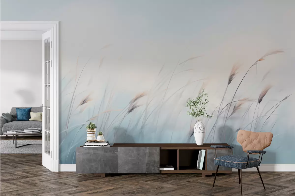 Тапете за зид Деликатне пољске траве на плавој позадини бр. w01643