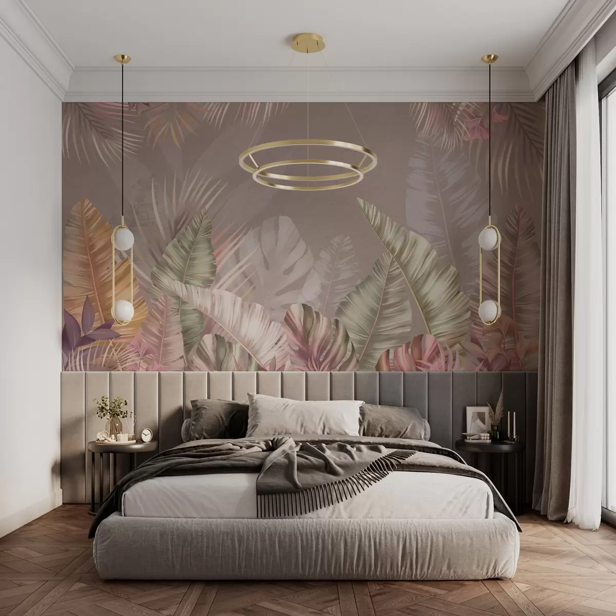 Тапете за зид Тропско лишће у меким пастелним нијансама бр. w01684
