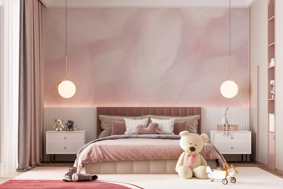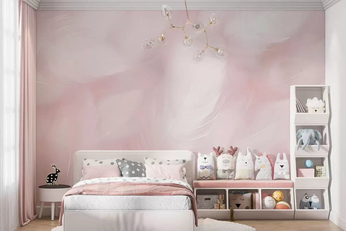 Тапете за зид Слатко перје на ружичастој позадини бр. w01703