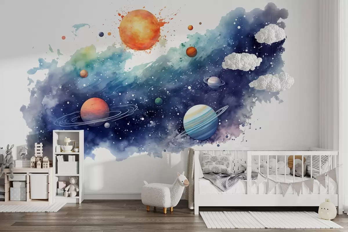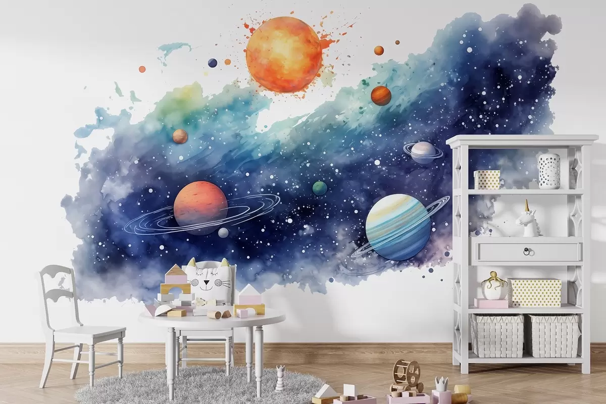 Тапете за зид Акварел простор, планете, сунце, звезде бр. w01803