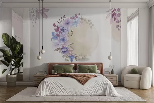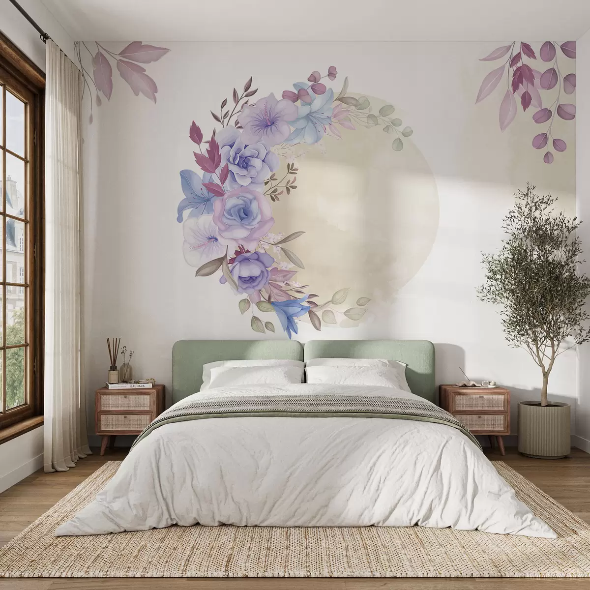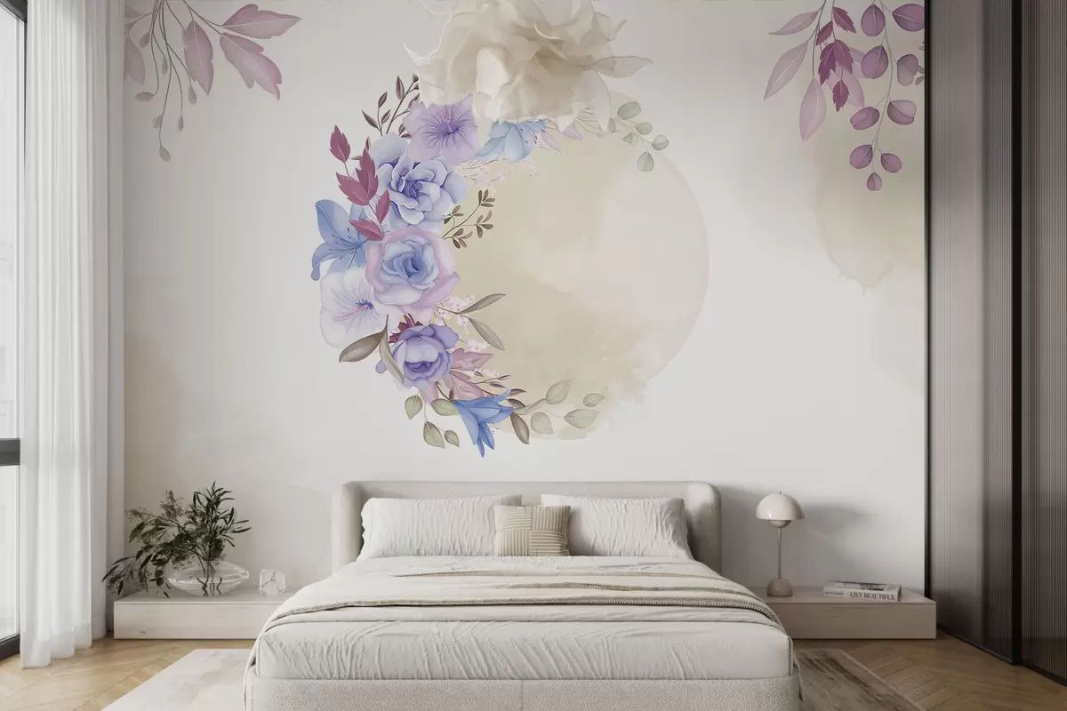 Тапете за зид Нежно цвеће у облику полумесеца у стилу акварела са беж мрљама бр. w01874
