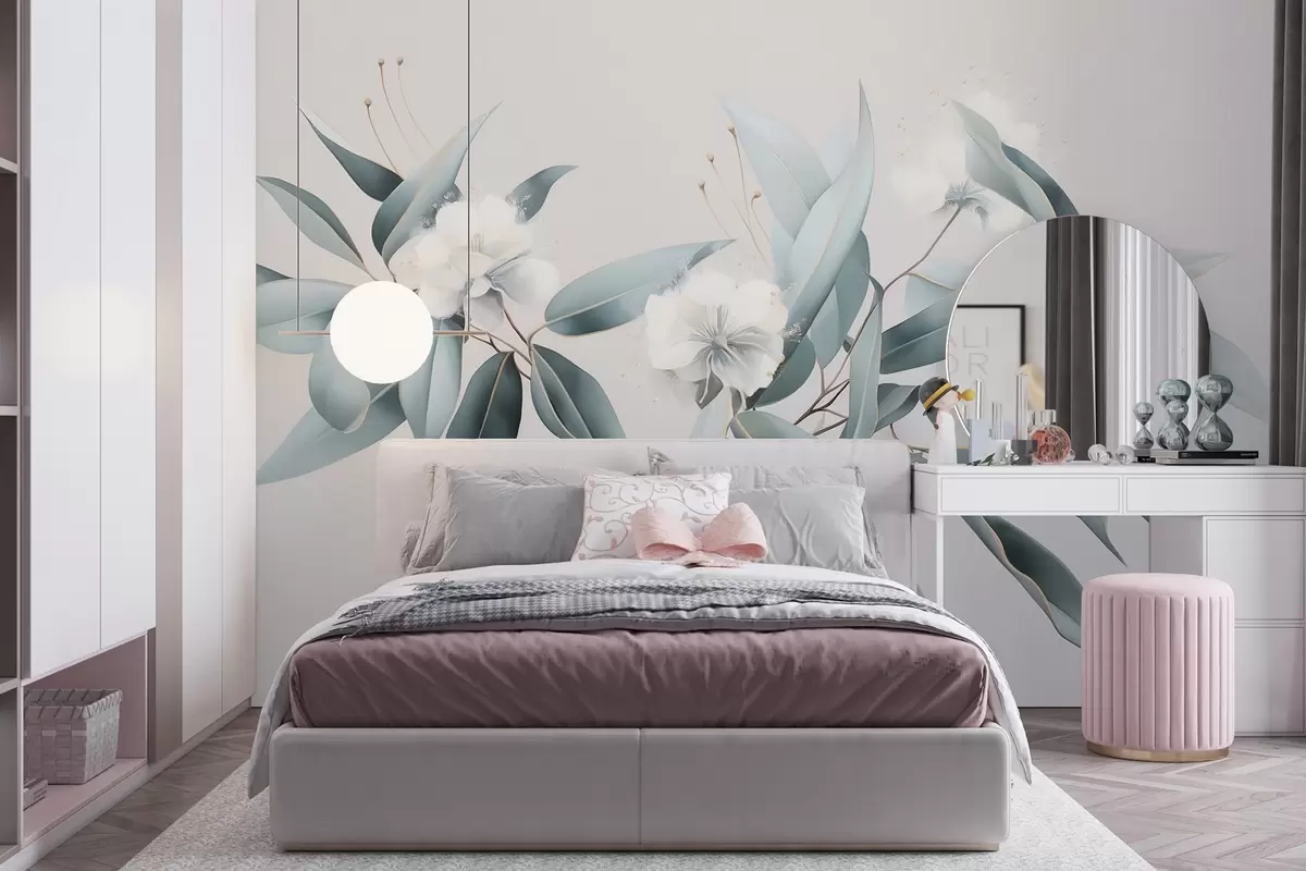 Тапете за зид Цвеће памука, природа, акрилни цртеж, нежне сиве боје бр. w01884