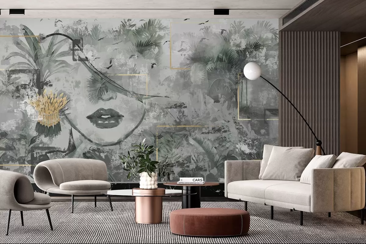 Тапете за зид Грунге прашума и силуета девојачког лица бр. w01916