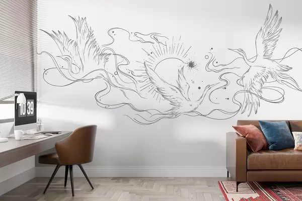 Тапете за зид Птице које лете, цртање линија, минимализам, сива палета боја бр. w02022v2
