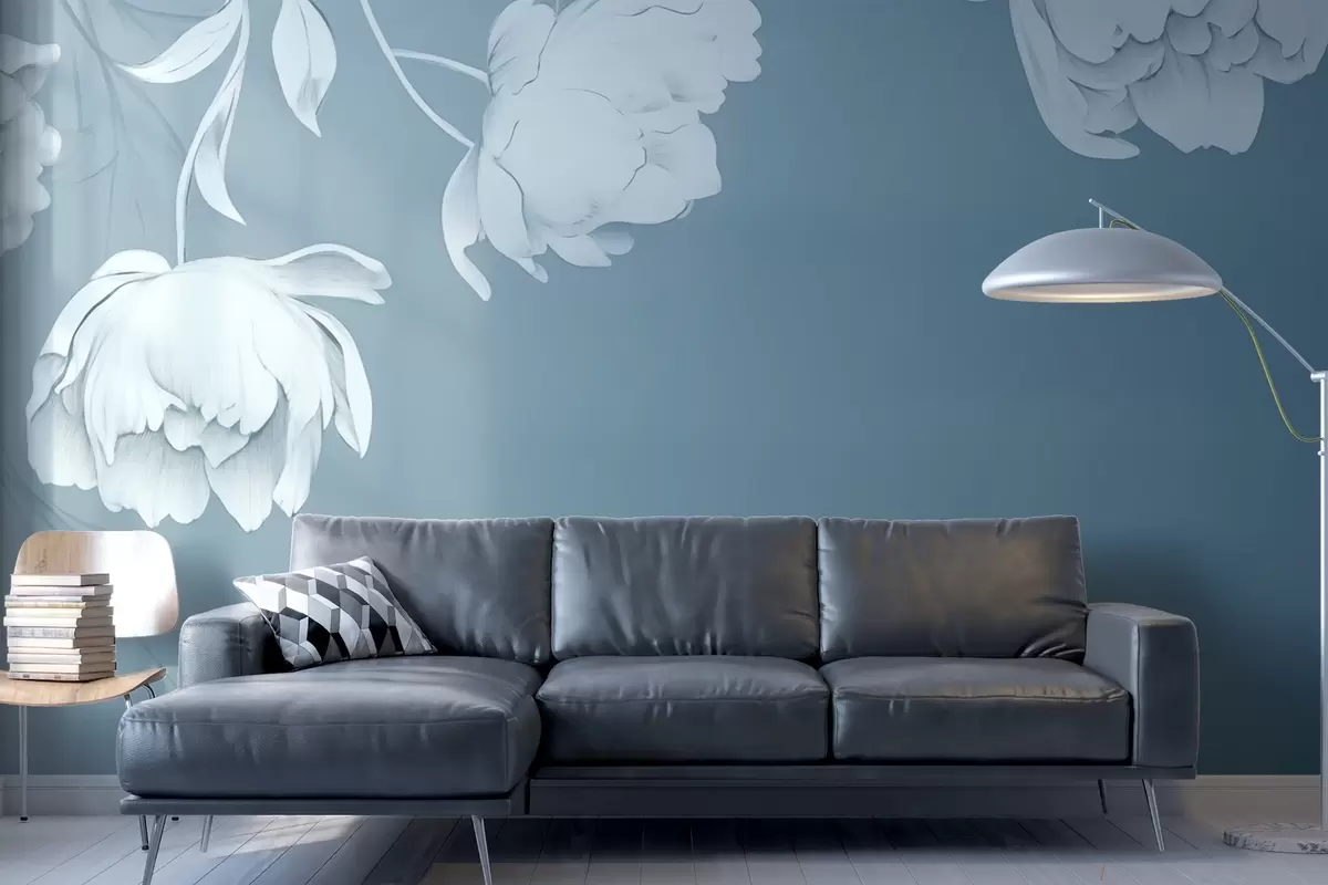 Тапете за зид Нежно цвеће на светло плавој позадини бр. w02035