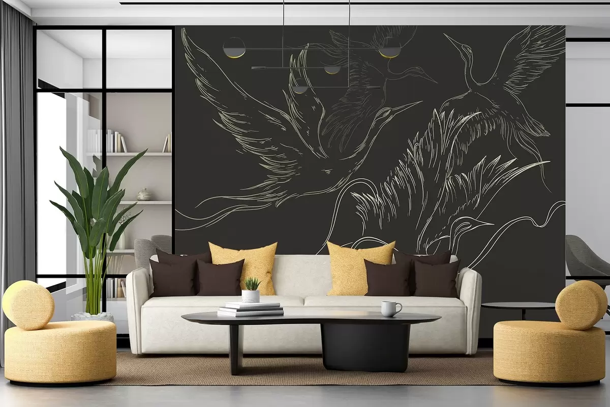Тапете за зид Птице лете, минимализам, цртана уметност, природа, тамна позадина бр. w02061v3
