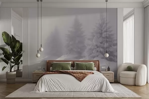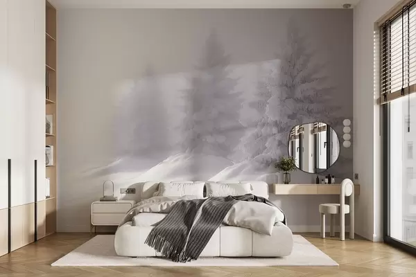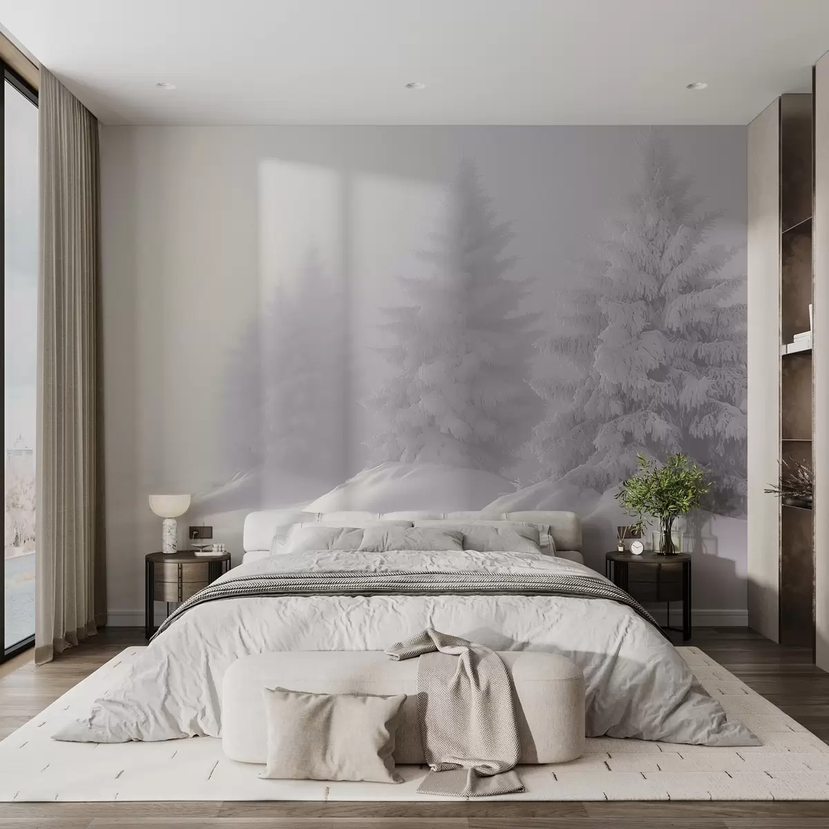 Тапете за зид Снежне јеле у самоћи магловитог јутра бр. w02065
