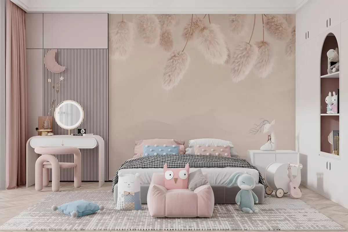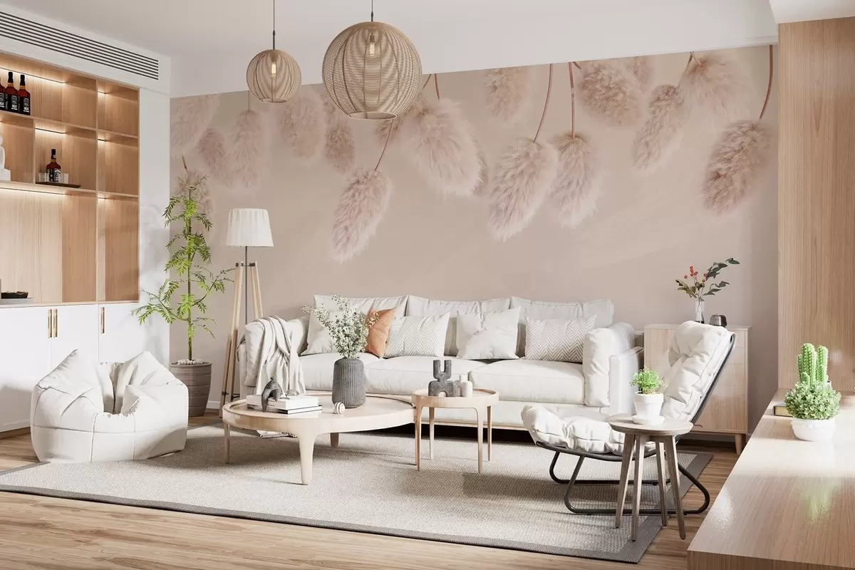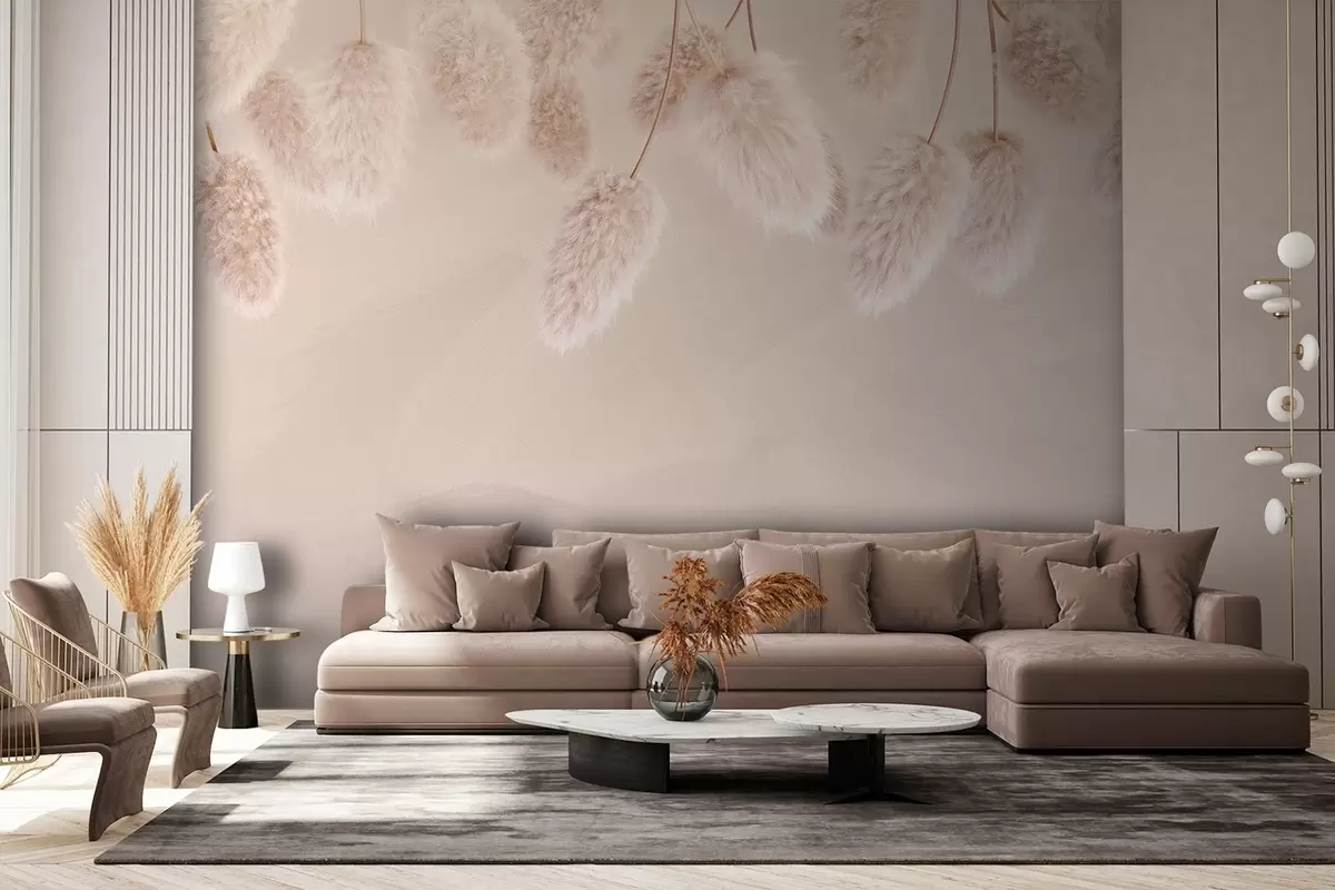 Тапете за зид Нежни облаци лагуруса на позадини меких ружичастих потеза бр. w02071