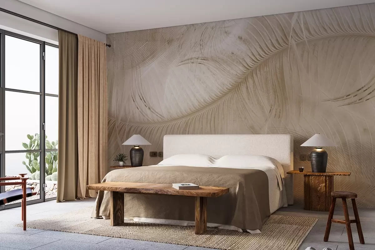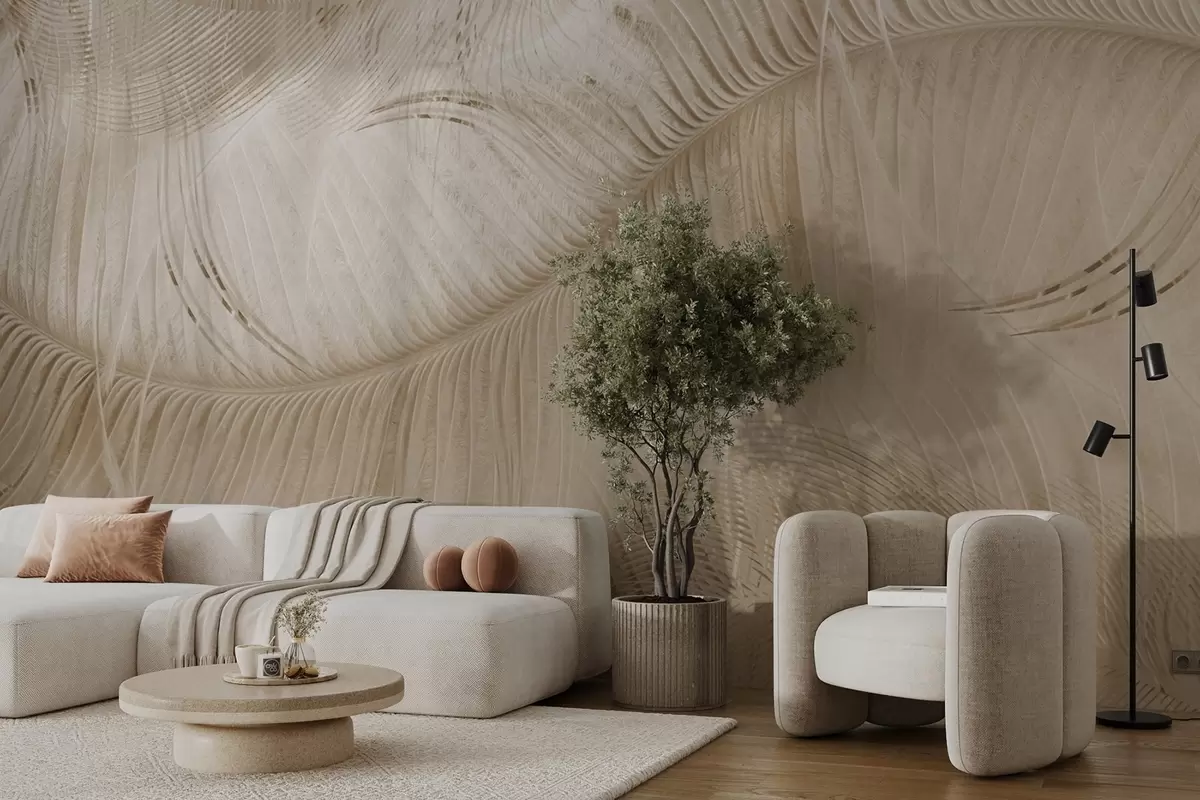 Тапете за зид Лагана текстура перја у беж тоновима бр. w02072v1