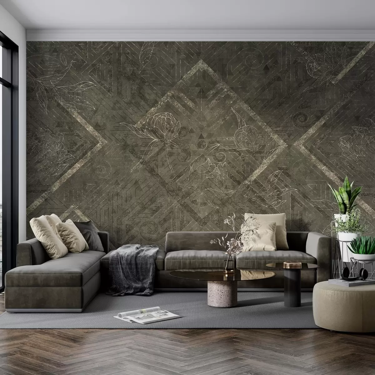 Тапете за зид Грунге текстура са цветним шарама у жутој боји бр. w02079