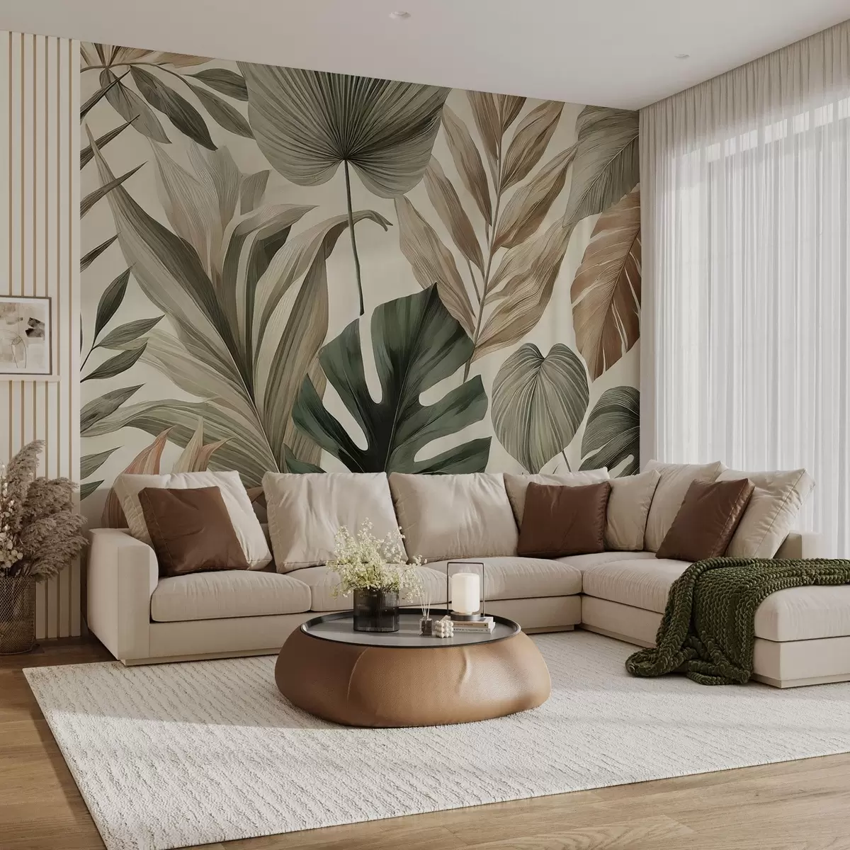 Тапете за зид Велики тропски листови у суздржаним деликатним пастелним нијансама бр. w02082