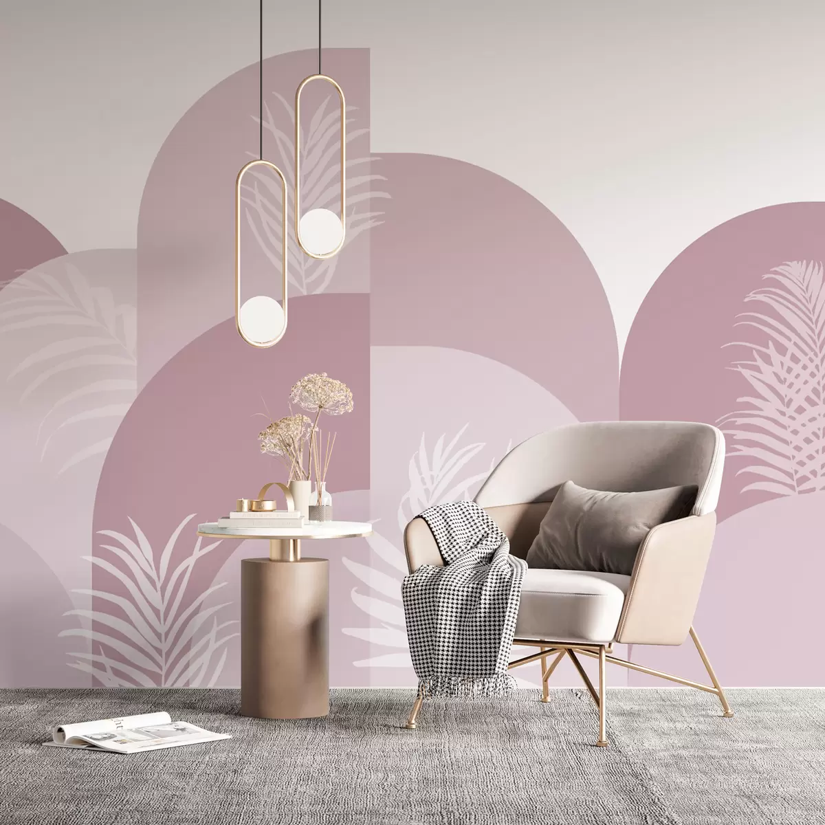 Тапете за зид Тренди лукови са тропским листовима ружичасте боје бр. w02101v4