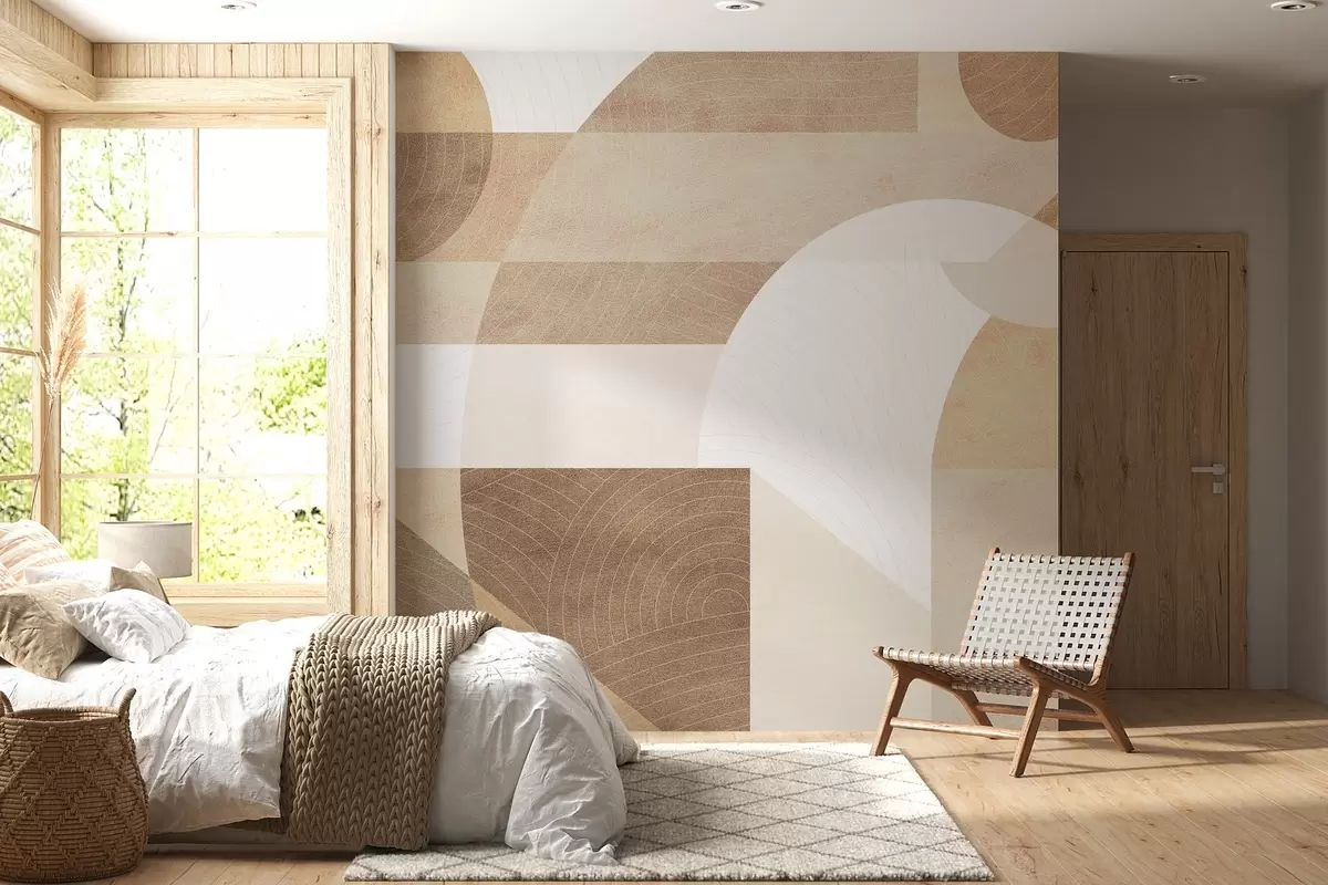 Тапете за зид Модерна геометрија са апстрактним облицима, текстурираним детаљима у беж и браон тоновима бр. w02140