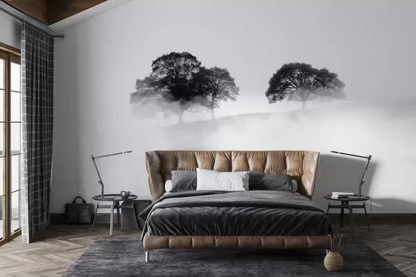 Тапете за зид Дрвеће на брду, минимализам, природа, црно-бело бр. w02148