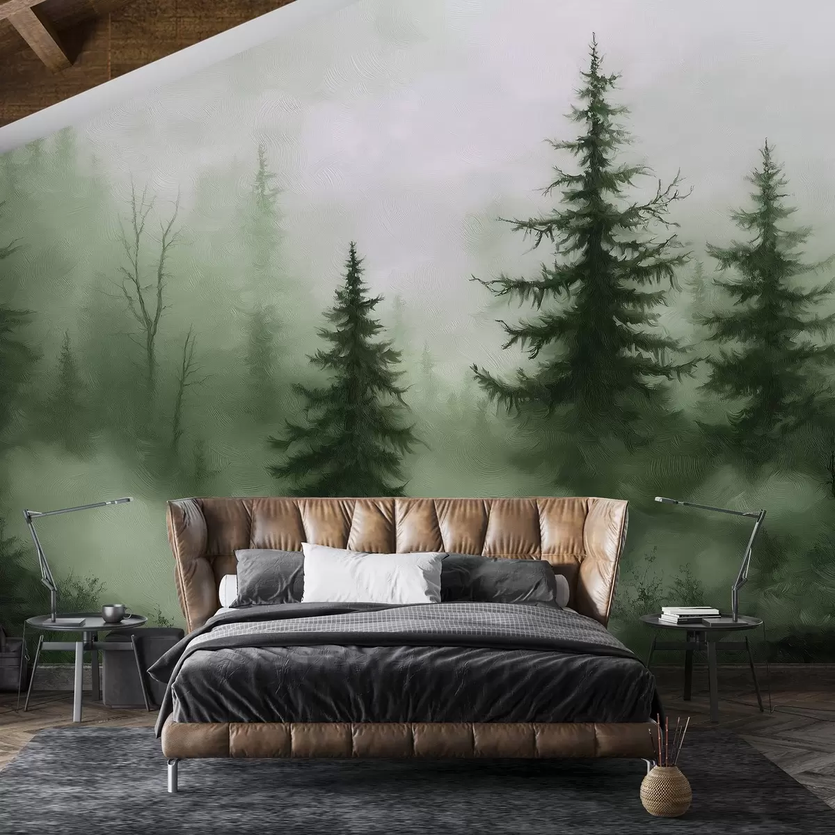 Тапете за зид Тамнозелена шума, уље на платну, потези четкицом, природа бр. w02153v1