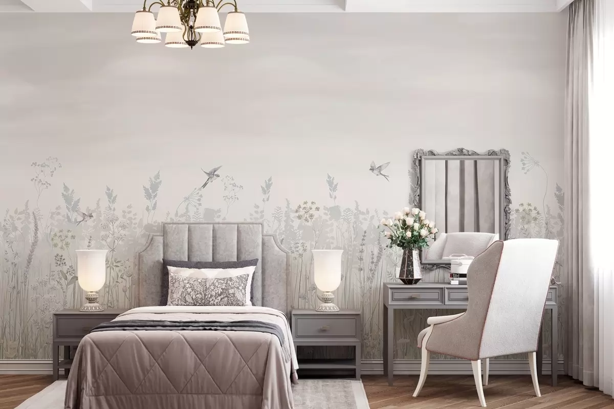 Тапете за зид Винтаге дивље цвеће и градијентно небо у пастелним нијансама бр. w02192