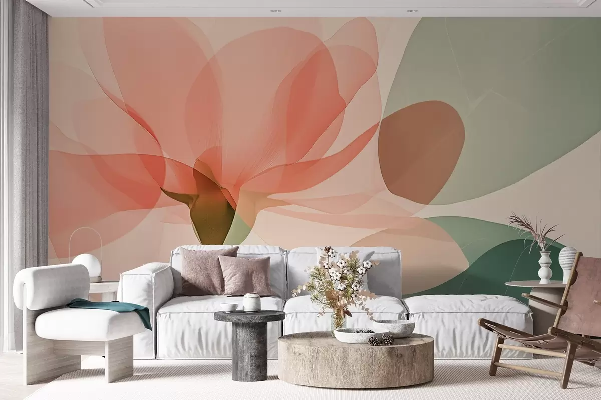 Тапете за зид Нежне ружичасте гарденије и зелени тонови прозирног лишћа бр. w02194