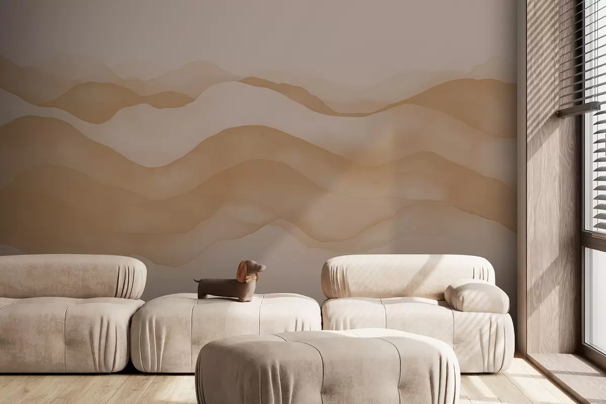 Тапете за зид Апстрактни беж таласи који подсећају на планине бр. w02196v1