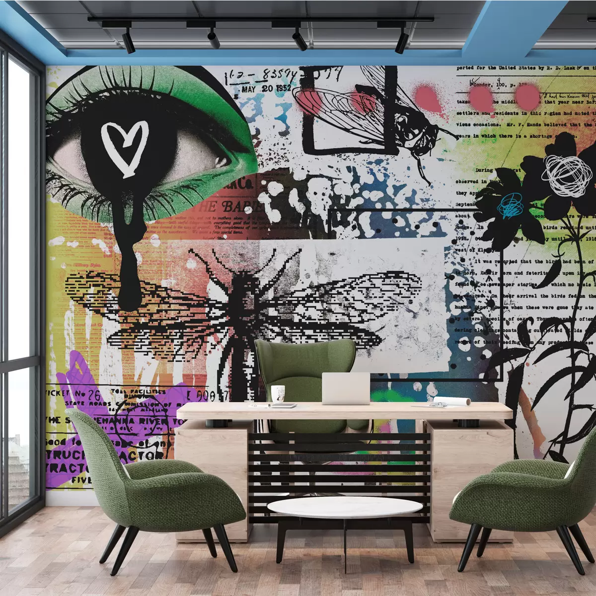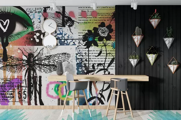 Тапете за зид Натписи у стилу графита, цвеће, фигуре бр. w02255