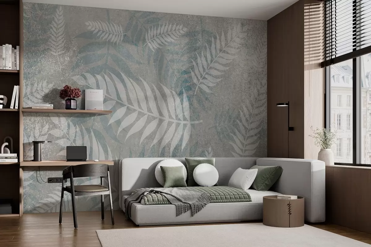 Тапете за зид Узорак листова папрати на текстурираној позадини бр. w02256