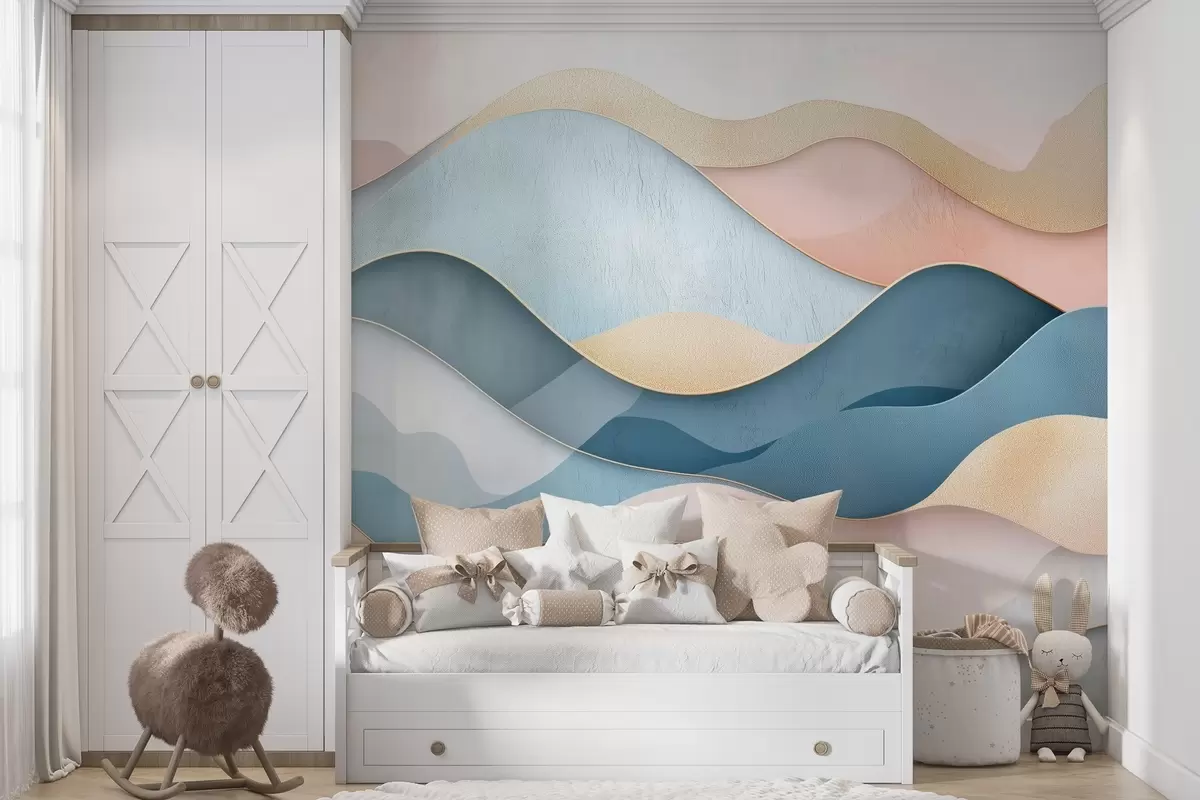 Тапете за зид Таласаста арт деко шара у розе и плавим бојама бр. w02290