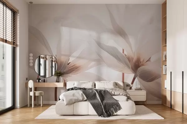 Тапете за зид Беж цвеће на светлој позадини бр. w02295