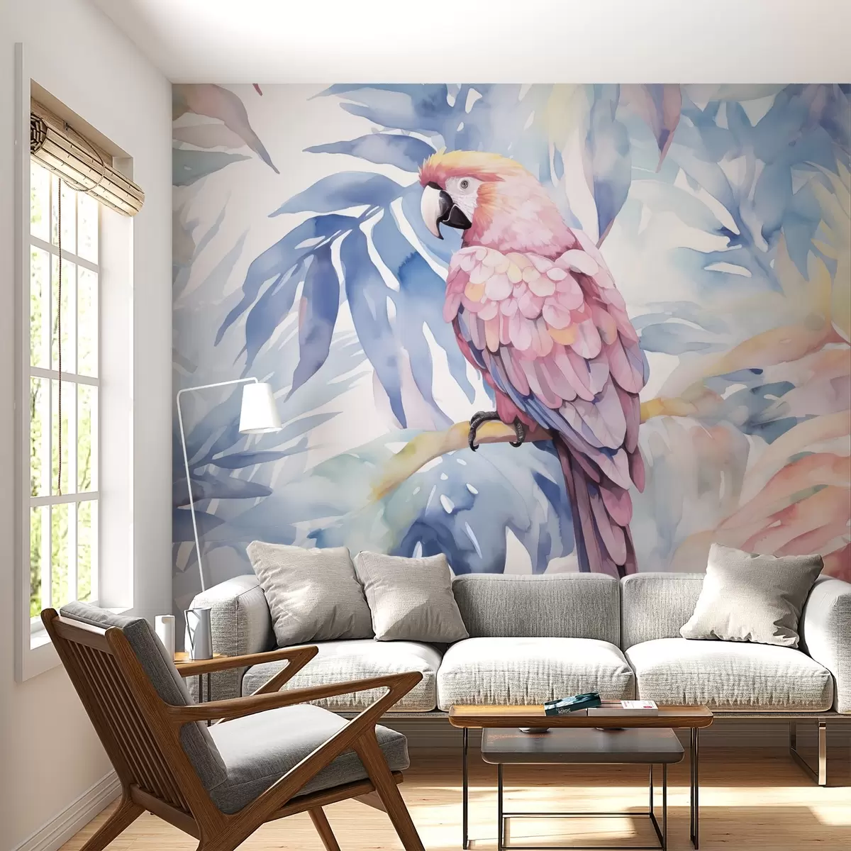 Тапете за зид Ружичасти папагај седи на грани имитација слике бр. w02330