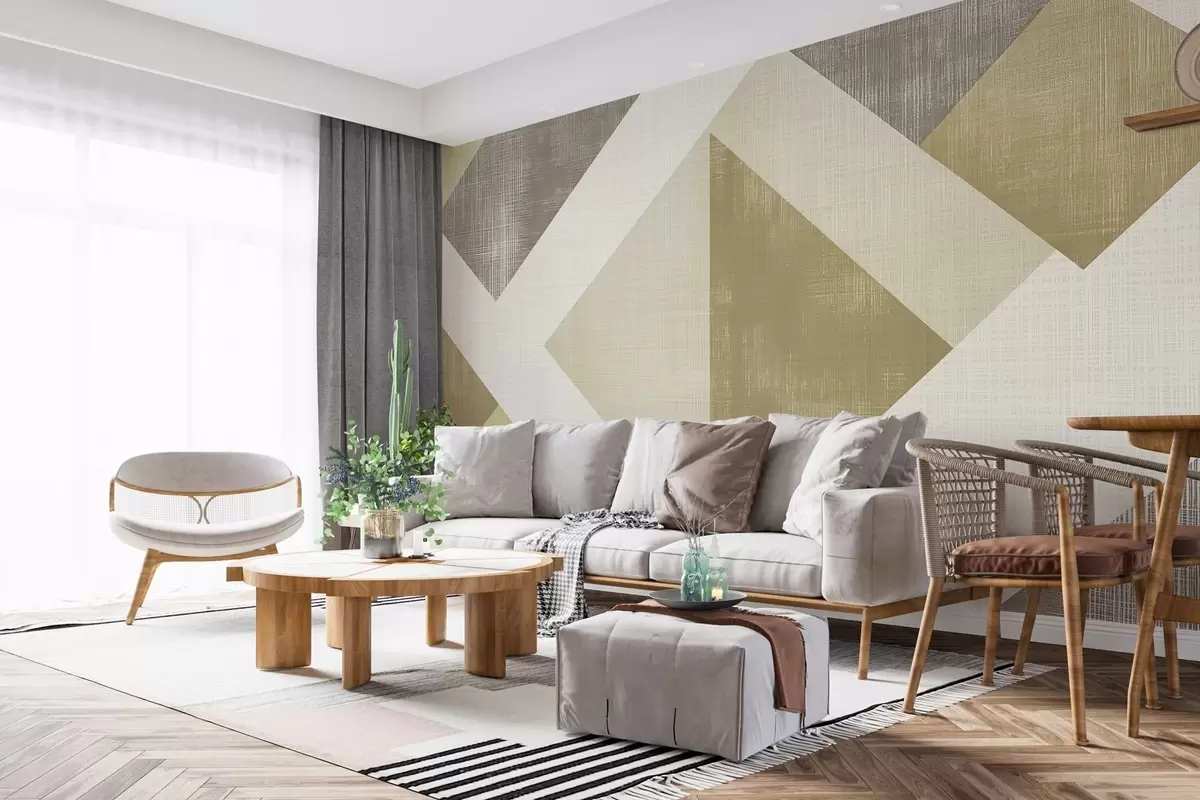 Тапете за зид Модеран геометријски дизајн тапета са облицима који се преклапају у меким беж, маслинастим и тамноцрвеним тоновима. бр. w02341