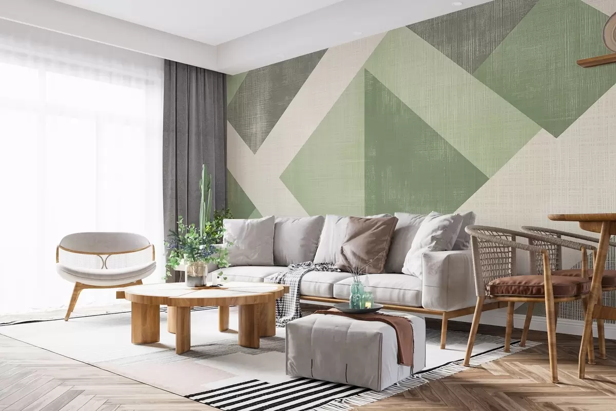 Тапете за зид Модеран геометријски дизајн тапета са преклапајућим облицима у меким беж и браон тоновима. бр. w02341v2