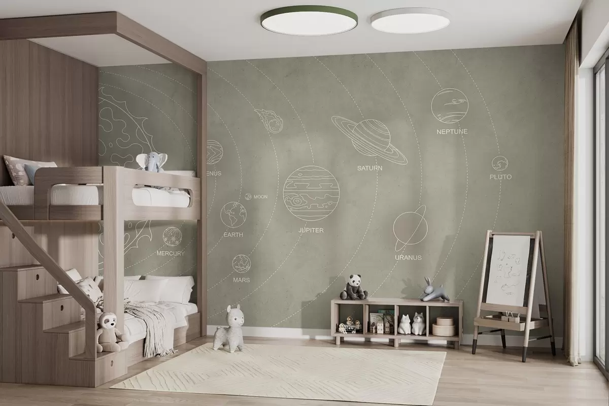 Тапете за зид Соларни систем у минималистичком стилу на хладној беж текстурираној позадини бр. w02344