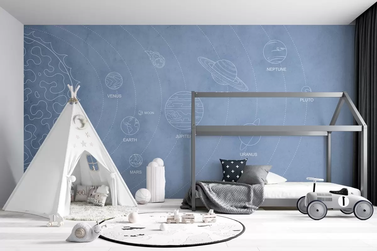 Тапете за зид Соларни систем у минималистичком стилу на плавој текстурираној позадини бр. w02344v1