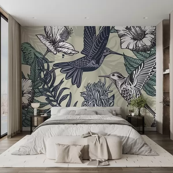 Тапете за зид Колибри и цвеће у цвету бр. w02362