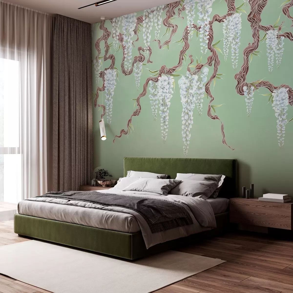 Тапете за зид Плава глицинија на зеленој грунге позадини бр. w02372v3
