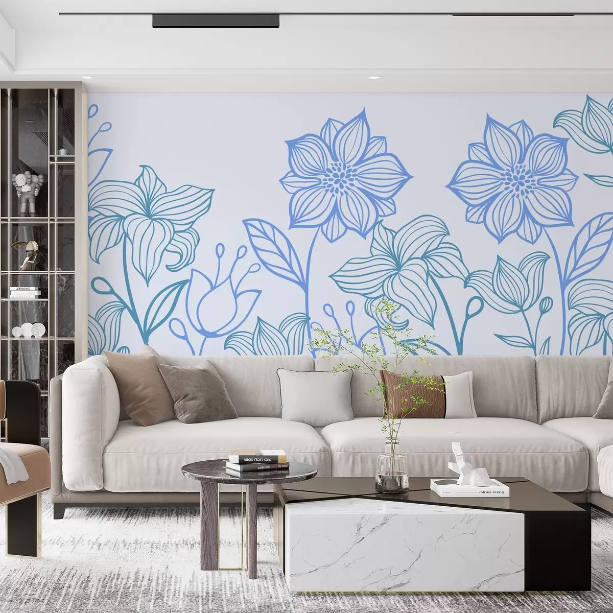 Тапете за зид Осликани обриси плавог цвећа бр. w02394v1