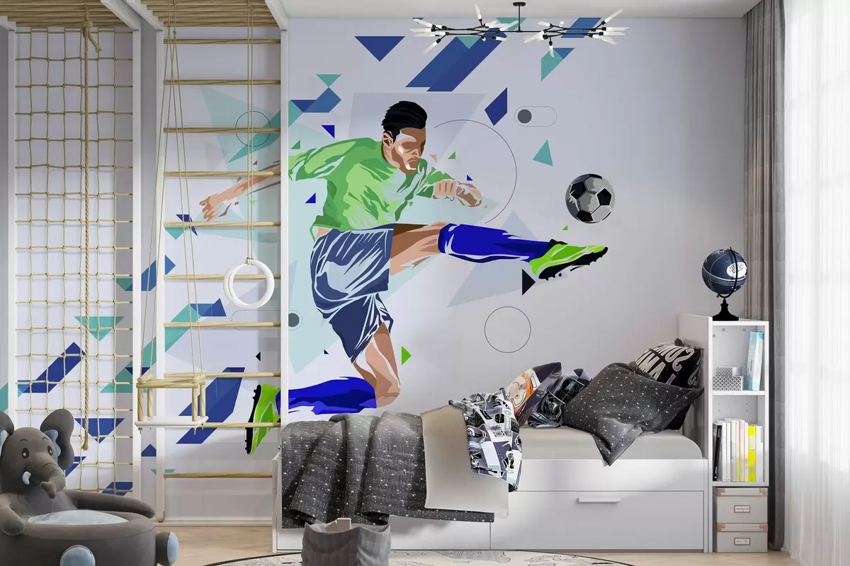 Тапете за зид фудбалер који шутира лопту бр. w02401
