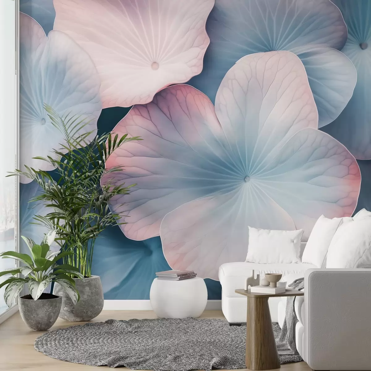 Тапете за зид велики лотосови листови у деликатним бојама бр. w02403