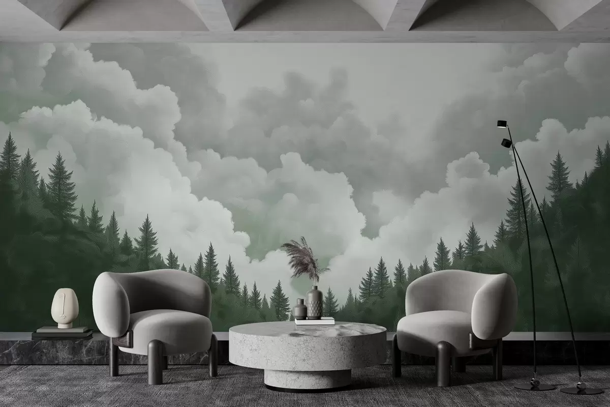 Тапете за зид Осликани густи облаци над шумом у стилу уља бр. w02411v2