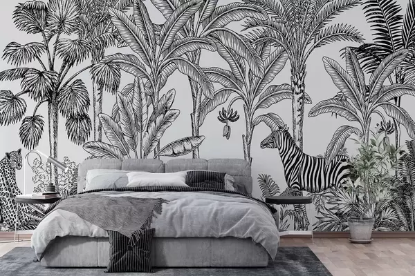 Тапете за зид Савана са леопардима и зебром бр. w02419