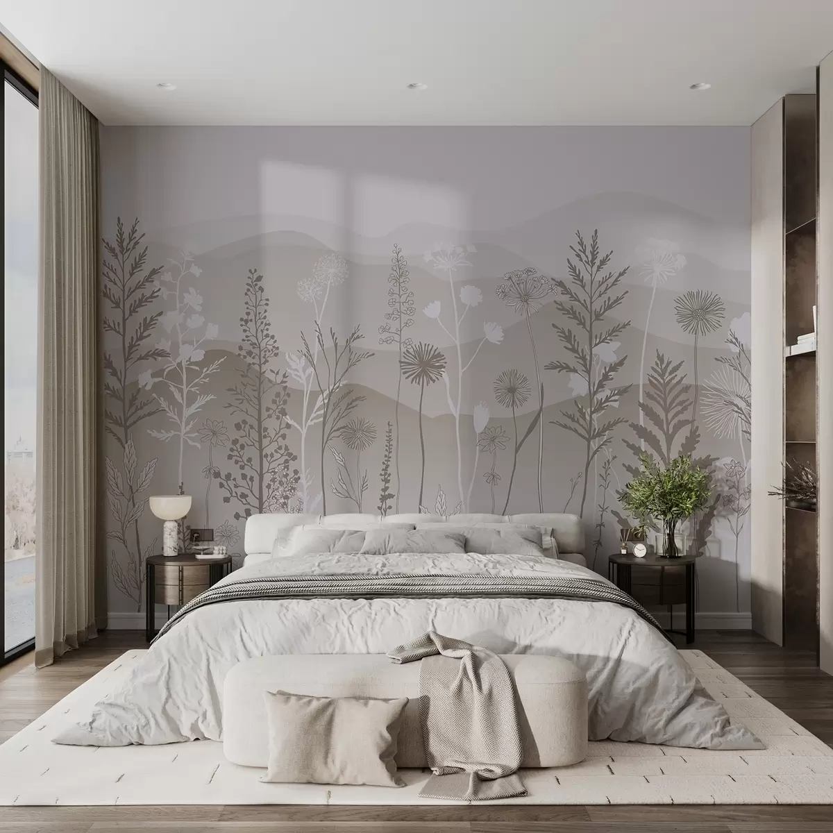 Тапете за зид тапете у еко стилу, дивље цвеће у светло браон тоновима бр. w02443v1