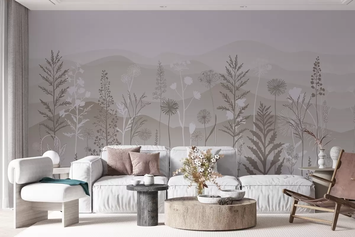 Тапете за зид тапете у еко стилу, дивље цвеће у светло браон тоновима бр. w02443v1