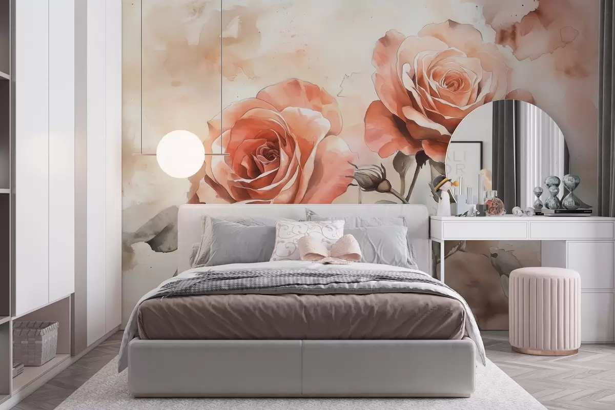 Тапете за зид Прелепе црвене руже у стилу акварела, цветне, беж боје бр. w02486
