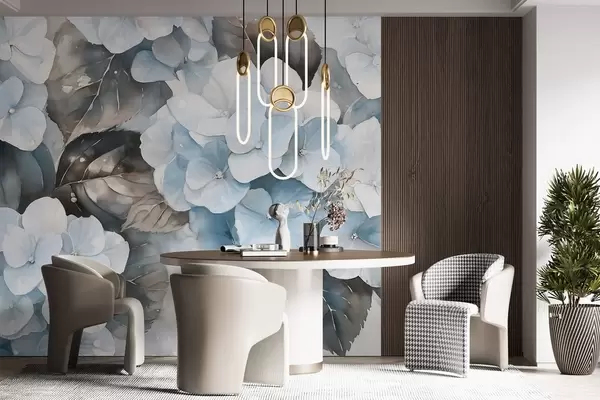 Тапете за зид Цвеће хортензије, цртеж у акварелу, плаве боје, цветни бр. w02488v1