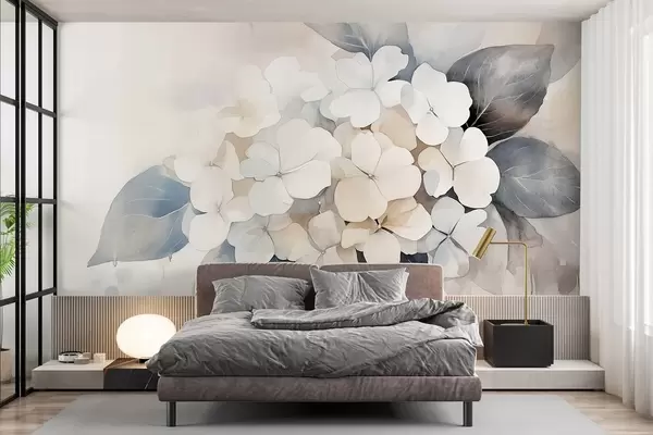 Тапете за зид Цвет хортензије, нежне боје, стил акварела бр. w02491