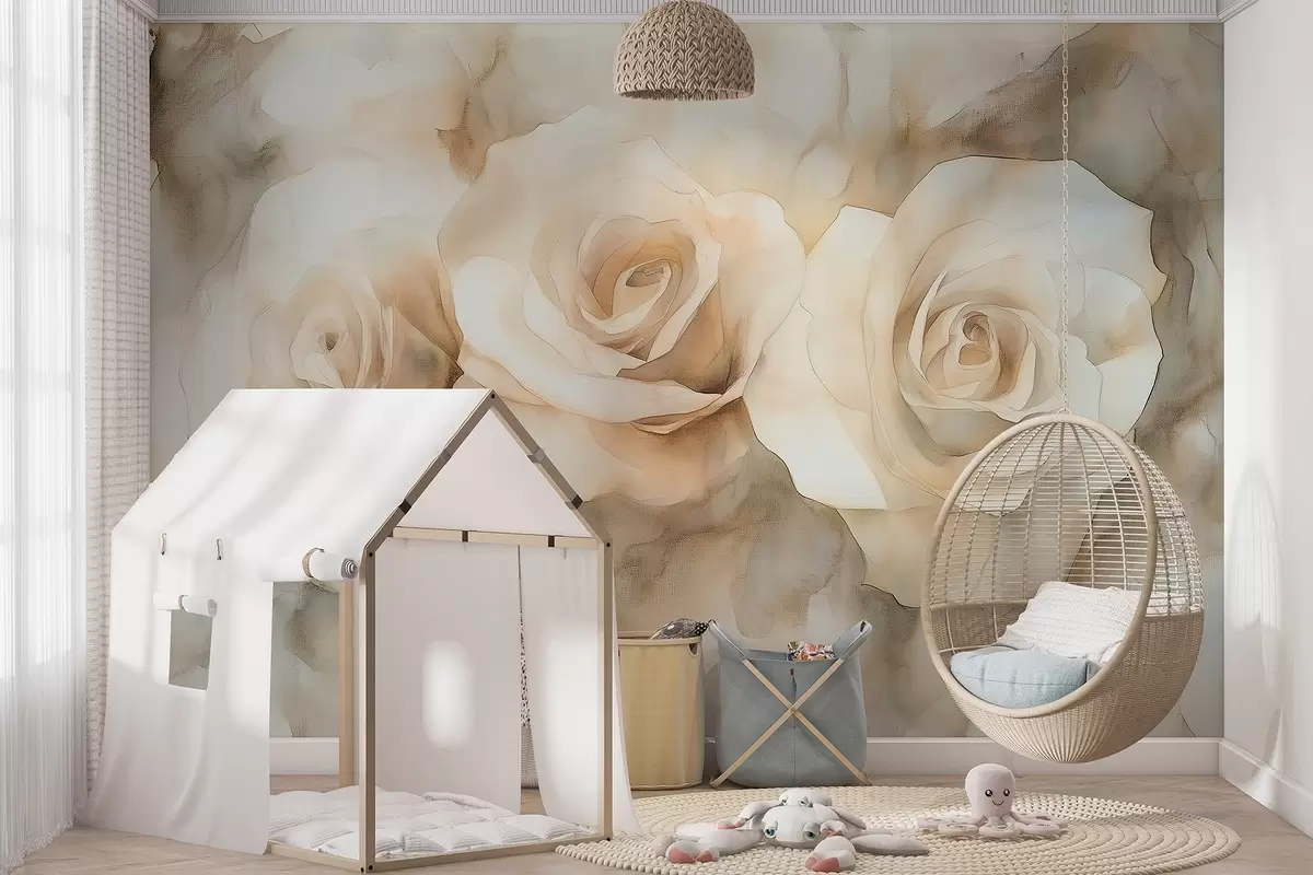 Тапете за зид Прелепе руже, акварел стил, беж боје, боемски бр. w02492